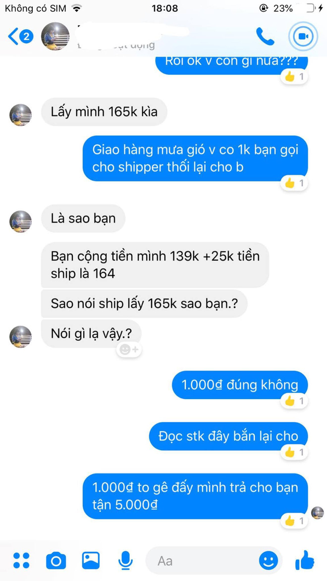 Chuyện là vào một ngày đẹp trời, tâm trạng chủ shop đang vui vẻ bỗng nhiên chuyển xám xịt khi bị khách nhắn tin để...nghiêm túc đòi lại 1k: "Giận tím người luôn á, shipper đi mưa gió 2 tiếng đồng hồ vì khách chỉ đường khó đi qua mà giờ còn nhì nhằng chỉ vì 1.000 đồng".