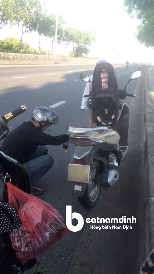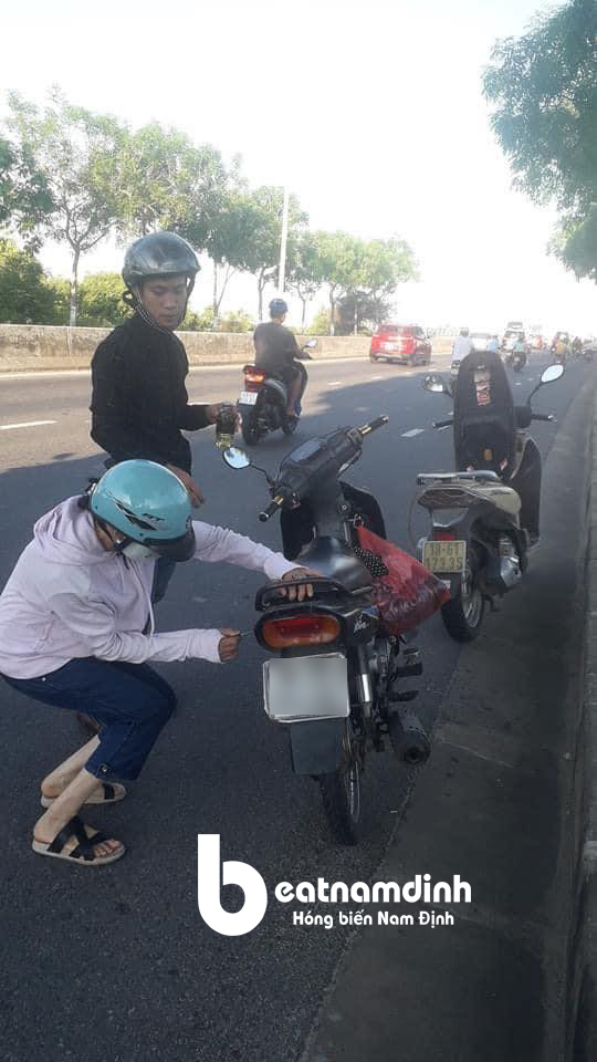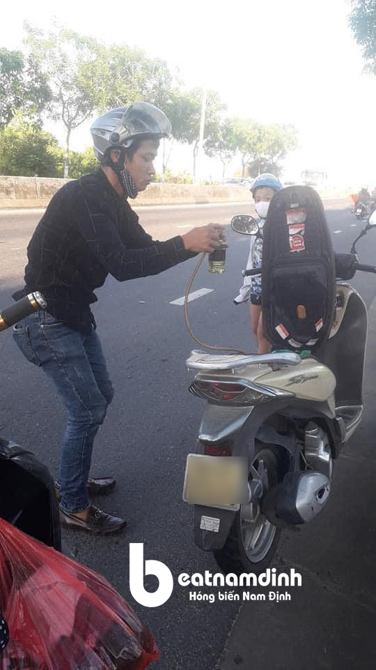 Anh chàng đã nhanh trí dùng một chiếc ống hút và chai nhựa để hút xăng từ xe của mình rồi đổ sang xe của 2 mẹ con nhà kia. Dù lượng xăng đổ sang không nhiều nhưng anh cũng đã giúp đỡ họ không phải dắt bộ thêm 2km để đến trạm xăng.
