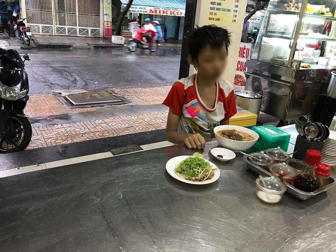 "Thấy nó ướt từ đầu đến chân, tôi hỏi nó nhà ở đâu nó không nói. Hỏi đói không thì nó gật đầu. Thế tôi kêu nó vào trong, gọi cho nó một tô bún riêu. Nhìn thằng nhỏ cũng chạc tuổi em mình. Nó cầm bát bún ăn vội vàng đến nấc nghẹn.