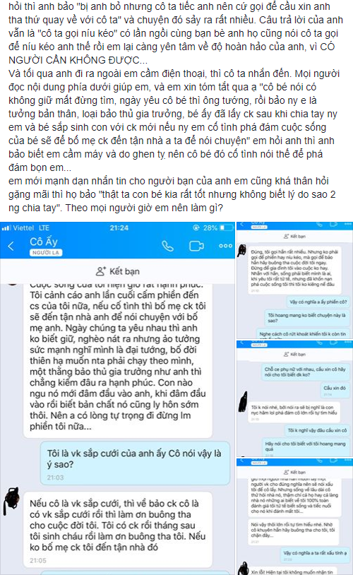 Theo lời cô người yêu cũ thì chính anh chàng này là người làm phiền và đeo đuổi cô ấy. Cô ta thậm chí còn đưa ra lời khuyên cực kì khó nghe: "Tôi khẳng định đối nhân xử thế cô không bằng tôi nên đến khi có chồng rồi hắn vẫn cố níu tôi. Có thể mọi người nhà hắn muốn lấy người vợ cho đúng nghĩa nên sẽ nói xấu tôi để cô lấy. Nhưng sống về lâu dài cô thử hỏi nhà nó, thậm chí cả họ hàng hay cả làng nhà nó những ai biết về tôi 100% toàn đánh giá tôi tử tế biết sống và tiếc nuối cho nó khi đánh mất tôi".