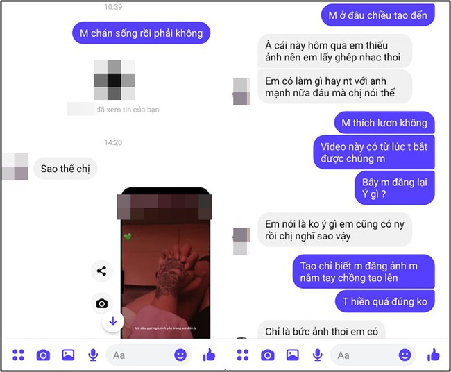 Ấy thế nhưng "cây muốn lặng mà gió chẳng ngừng", tưởng mọi chuyện đã xong xuôi nhưng kẻ thứ ba vẫn tiếp tục đứng ra khiêu khích cô vợ. Cụ thể, cô ả lấy một bức hình chụp chung với chồng người ta trước đó và đăng lên mạng. Người vợ vô tình chứng kiến thì "sôi cả máu" bèn nhắn tin trực tiếp cho tiểu tam để chất vấn.