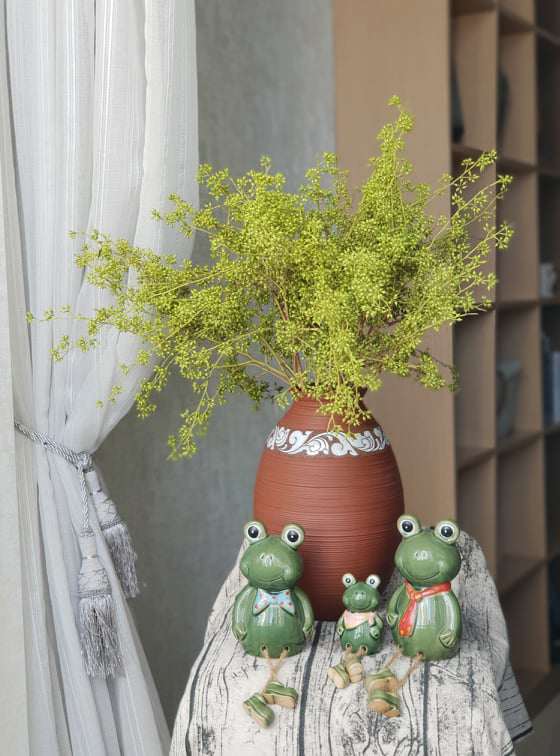 “Mình là tuýp phụ nữ thích chăm chút cho gia đình. Tuy bình lọ nhiều nhưng mình luôn cố sắp xếp để không bừa bãi. Con trai mình rất hay than phiền mẹ cắm hoa, mua bình lọ nhiều quá. Dù vậy con vẫn ý thức được đó là thú vui của mẹ nên không bao giờ đụng hay làm vỡ bình dù rất hiếu động. Mỗi lần đi đâu có lá đẹp cháu còn chủ động nhắc mẹ xin về để cắm hoa.