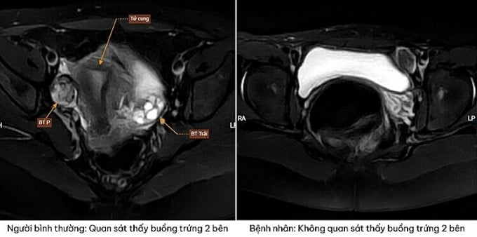 Kết quả siêu âm và chụp MRI cho thấy em không có tử cung và buồng trứng. Thay vào đó, bác sĩ phát hiện tổ chức nghi ngờ là tinh hoàn nằm trong ổ bụng. Xét nghiệm nhiễm sắc thể xác định bệnh nhân mang bộ 46, XY thuần. Điều này xác định người bệnh là nam về mặt di truyền, dù hình thái bên ngoài là nữ.