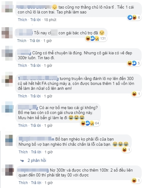 Đọc đến đây, nhiều cư dân mạng cũng không biết phải biểu đạt cảm xúc gì dành cho thanh niên "cơ hội" này. Chẳng những nhanh chóng xóa được cục nợ xấu lên đến 300 triệu, anh chàng còn nghiễm nhiên có vợ đẹp cùng một món hồi môn lên đến 100 triệu đồng tiền mặt để lấy vốn liếng làm ăn. Dù quá trình tán tỉnh, "úp sọt" con gái rượu của chủ nợ có đôi phần gian nan, nhưng không thể phủ nhận một điều là anh chàng này cũng hết sức may mắn.