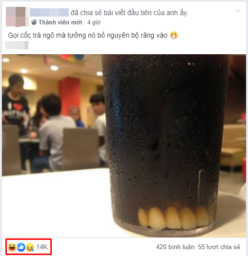 Anh chàng đã đăng tải bức ảnh cốc trà ngô lên MXH kèm chú thích: "Gọi cốc trà ngô mà tưởng được bỏ nguyên bộ răng vào".
