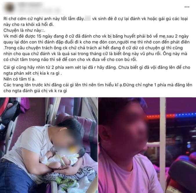 “Vợ mới đẻ được 15 ngày đang ở cữ đã đánh cho vợ bị băng huyết phải bỏ về mẹ, sau 2 ngày quay lại đón con thì đánh đập đuổi đi, không cho mẹ đón con, người mẹ thì nhớ con đến phát điên. Trong câu chuyện này trách ông chồng chứ chả trách ai hết, đang ở cữ thì có chuyện gì cũng nhịn cho qua chứ, đánh vợ là quá sai” - chia sẻ đang gây chú ý đặc biệt trên các diễn đàn mạng xã hội về vụ việc.
