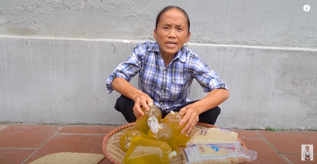 Mở đầu video, bà Tân chia sẻ đây là món lúc nhỏ mình rất hay ăn, thường phải đổi giấy cũ cho các cô bán ve chai để có mà thưởng thức. Để làm được chiếc kẹo kéo khổng lồ, nguyên liệu bà chuẩn bị là khoảng 5 gói mạch nha cùng 2 gói đường đỏ.