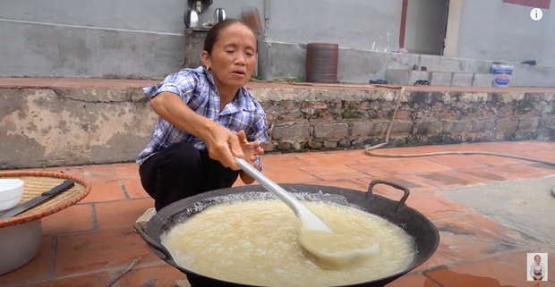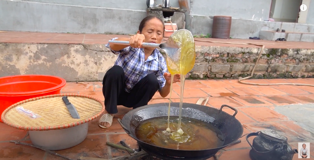 Trong vlog mới nhất, bà Tân làm một chiếc kẹo kéo "siêu to khổng lồ". Đây cũng là lần hiếm hoi bà làm món tráng miệng kiểu thế này.