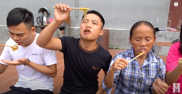 Sau khi hỗn hợp đã nguội bớt và đông đặc lại, bà Tân đổ ra một chiếc mâm lớn và mời con cháu cùng thưởng thức. Điều đặc biệt ở đây là mọi người chỉ dùng một chiếc đũa để "kéo" phần mạch nha ra và ăn. Phải chăng đây là định nghĩa "kẹo kéo" của bà Tân?