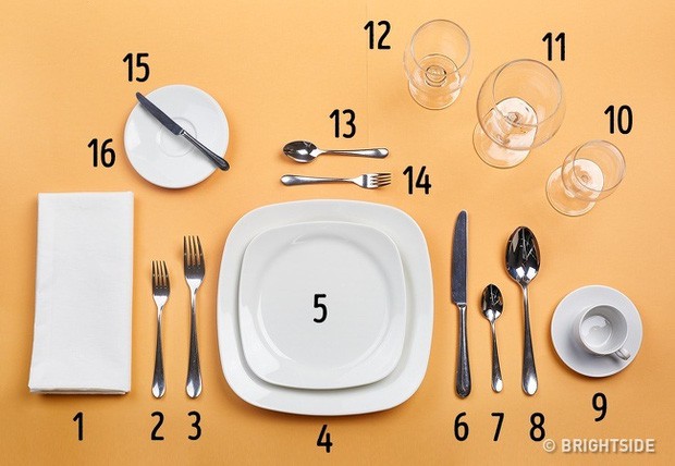 Tiếp theo, trong một nhà hàng hạng sang, bạn sẽ thấy trên bàn ăn có rất nhiều dụng cụ (dao, dĩa/nĩa, khăn ăn...), và cách sử dụng chúng cũng cần tuân theo một số quy tắc nhất định.