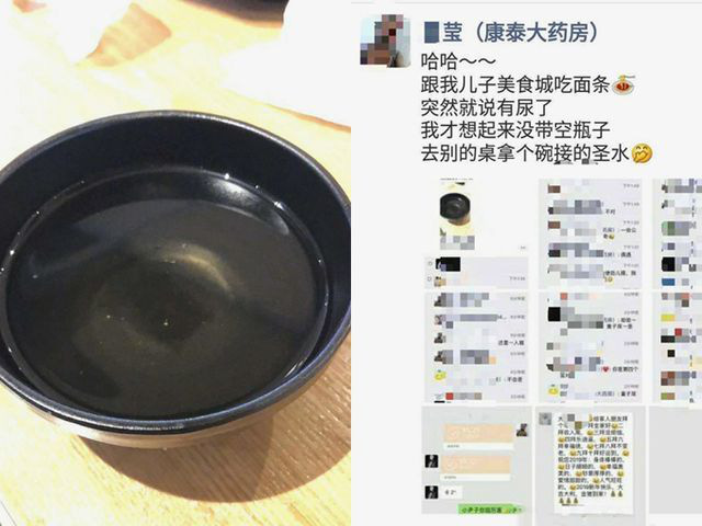 Sự việc xảy ra tại một nhà hàng ở thành phố Trường Xuân, tỉnh Cát Lâm, Trung Quốc cách đây một năm. Tại đây, một phụ nữ đã cho con trai đi tiểu vào bát của nhà hàng, thay vì đưa cậu bé vào nhà vệ sinh.