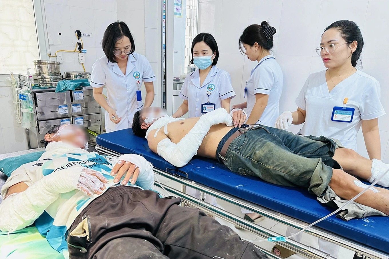 Ngày 28/4, Trung tâm Y tế Tân Kỳ (Nghệ An) xác nhận đang điều trị tích cực cho hai bệnh nhân L.V.N. và P.V.L. (cùng trú tại xã Tân An). Cả hai nhập viện trong tình trạng bị thương tổn nghiêm trọng tại các vùng nhạy cảm như đầu, mặt, cổ và tứ chi do bỏng khí gas.