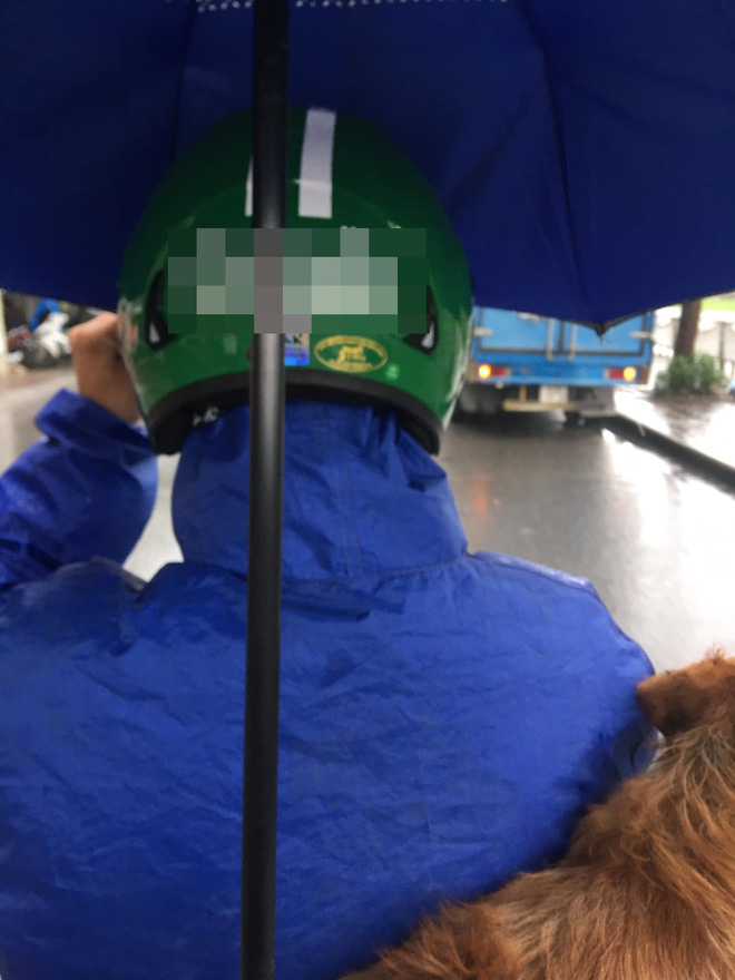 Đây là câu chuyện được đăng tải lên mạng xã hội trong group Cháo hành miễn phí. Theo hình ảnh đính kèm, chú chó và chủ được che ô, anh tài xế đi chậm chậm để hành khách không bị ướt. Nhiều người khen về sự đáng yêu này.