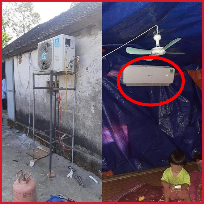 Để khắp phục tình trạng này, người bố nhanh trí dùng tấm bạt để ngăn một vùng không gian trong nhà, quây kín rồi lắp điều hòa bên trọng. Nhìn hình ảnh đứa trẻ ngồi chơi trong gian phòng có điều hòa mát mẻ, nhiều người không khỏi vui mừng.