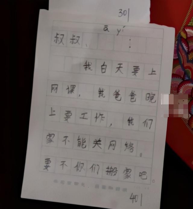 Được biết, con trai của chủ nhà sau khi đọc nội dung ghi chú đã lập tức viết một lời nhắn khác và gửi trả về người hàng xóm đó. Cậu bé viết: "Chú ơi, ban ngày cháu phải học online, còn bố cháu ban đêm phải làm việc thêm, do đó Wifi nhà cháu không thể tắt được".