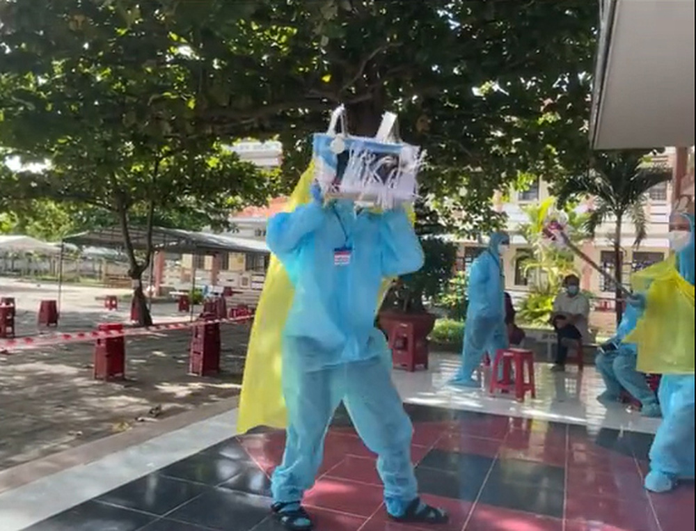 13/09/2021 22:54Tiếng trống múa lân 'náo loạn' khu cách ly, đội tình nguyện viên gây chú ý vì màn hóa trang độc lạ
