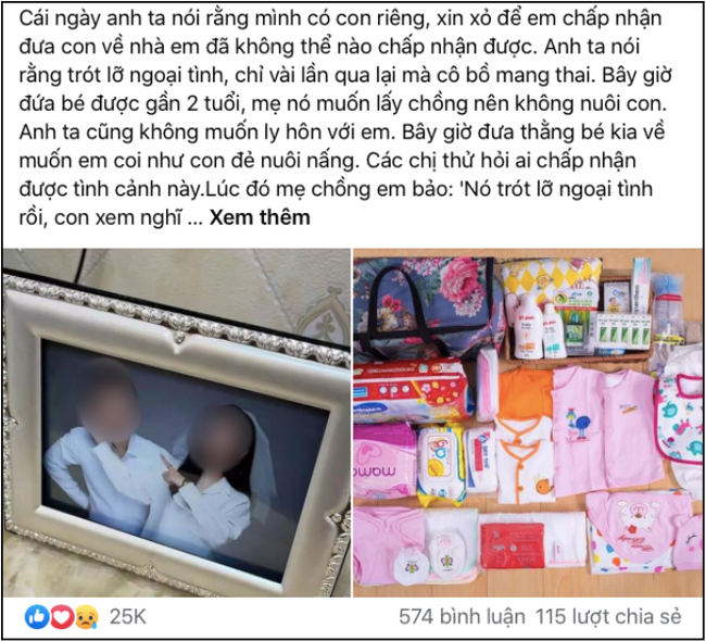 Anh ta cũng không muốn ly hôn với em. Bây giờ đưa thằng bé kia về muốn em coi như con đẻ nuôi nấng. Các chị thử hỏi ai chấp nhận được tình cảnh này".