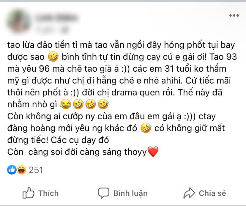 Chính vì vậy mà L.D đã có những phản hồi lại khá tiêu cực, đồng thời cũng tỏ vẻ T.H đang "ăn không được nên cố ý đạp đổ".