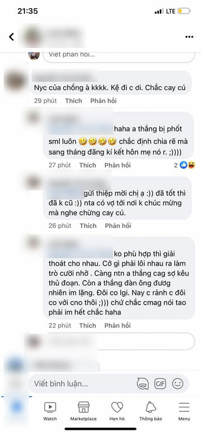 Dù không nhắc nhiều tới L.D nhưng T.H cũng dùng vài dòng lên án vợ tương lai mới của người yêu cũ là lừa đảo nên cả hai khá "xứng đôi vừa lứa". Hơn nữa T.H còn nhấn mạnh rằng T.T đã cầu hôn L.D bằng kiểu nhẫn giống hệt khi câu hôn cô khiến cho ai nấy đều nghĩ rằng T.T đã mang chiếc nhẫn cầu hôn người yêu cũ đi cầu hôn lại người yêu mới.