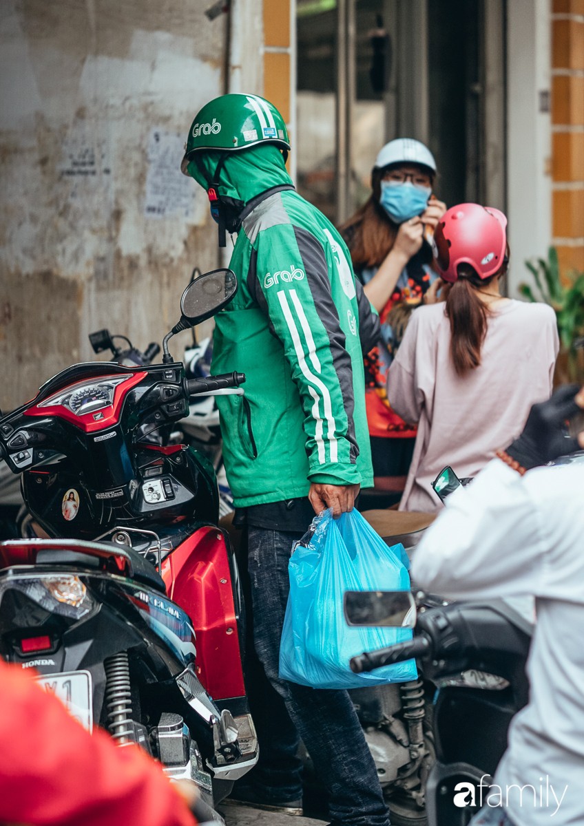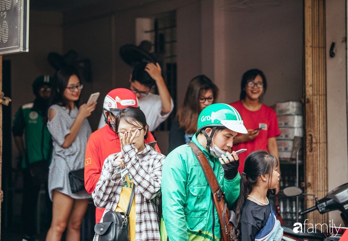 3h chiều, vẫn có những anh shipper, khách hàng ngồi đợi khá kiên nhẫn, chỉ để mua được một cốc chè đậu đỏ. Nhiều người đợi đến hơn 1 tiếng đồng hồ để mua giao cho khách đặt qua ứng dụng đồ ăn, song đến khoảng 3 rưỡi, hàng người dài dằng dặc đã thất vọng đi về vì... hết sạch đậu đỏ, không còn một hạt nào để bán. Ai cũng đặt vài chục cốc mang đi, chủ quán nấu cũng không kịp.