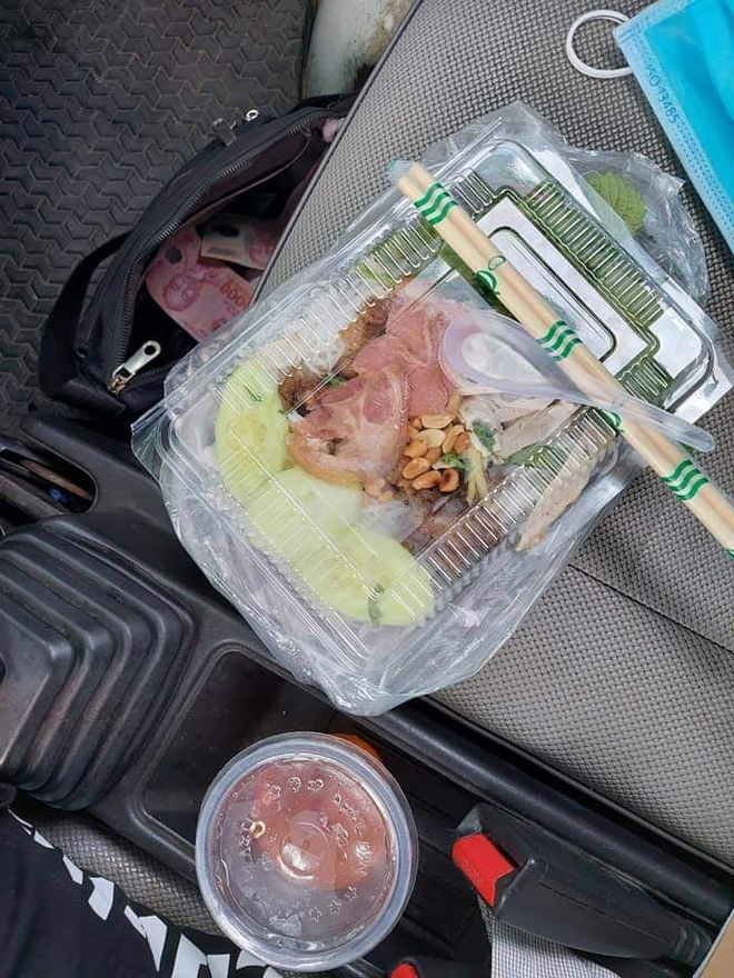 Vì mình nghĩ bà chị kia cũng sẽ quay lại tìm túi thịt rơi thôi, nên vừa ăn vừa chờ. Mọi người nếu thấy cảnh ăn cái hộp bún nó hơi nhếch nhác thì thông cảm ở đây cấm hàng quán, chỉ bán mang về nên mình mới ăn bún trộn trong cái hoàn cảnh như vậy.
