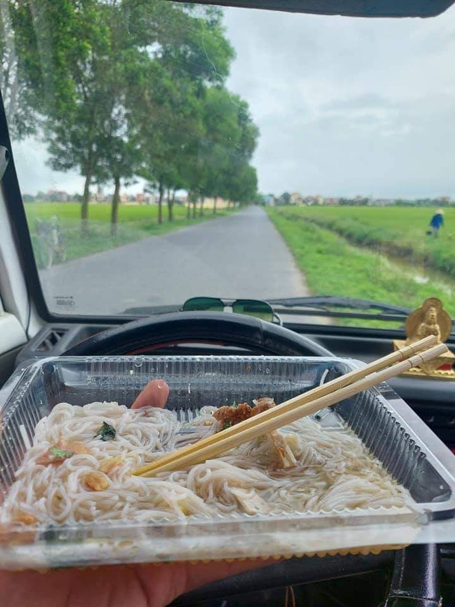 Đằng nào cũng chưa ăn sáng, hộp bún mua rồi nhưng cũng chưa tạt xe vào đâu mà ăn được nên mình quyết định đỗ xe lại và mang hộp bún ra ăn.