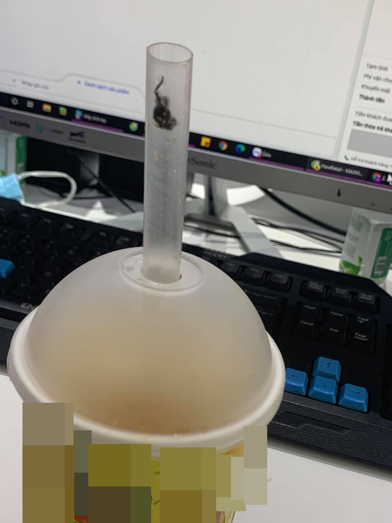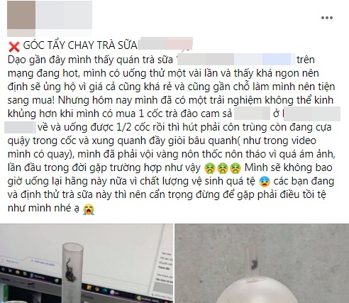 Mới đây, trong một hội nhóm chuyên reivew đồ ăn đã chia sẻ bài viết "bóc phốt" một cửa hàng trà sữa ở Hà Nội. Theo đó, người này có mua trà mang về nhưng khi uống thì lại phát hiện có côn trùng ở bên trong.