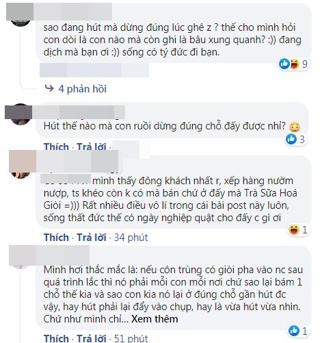 Cụ thể, có cư dân mạng cho rằng đây có thể chỉ là một màn dàn dựng bởi nhìn qua thì thấy khá vô lý. Theo đó, làm sao mà cô gái có thể hút trà sữa lên và dừng đúng lúc con côn trùng "hạ cánh" ở đầu ống hút như thế kia được nhỉ?