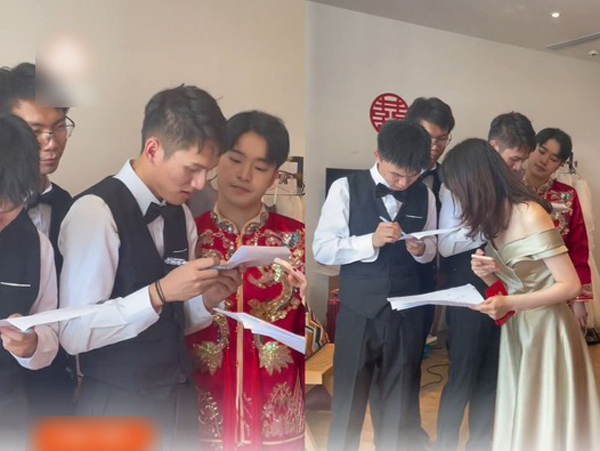 Cô cho biết, cô dâu chú rể đều học tiến sĩ tại đại học Bắc Kinh, là học bá hàng thật giá thật nên cách “náo hôn” lúc đưa đón dâu của họ cũng khác so với người bình thường.