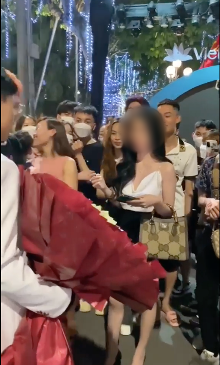 Cụ thể, tại phố đi bộ Hồ Gươm tối qua xuất hiện một màn tỏ tình rầm rộ của một anh chàng mặc vest lịch sự, điển trai như trai Hàn đã thu hút sự chú ý của rất nhiều người làm náo loạn cả một góc phố. Trên tay anh ôm một bó hoa đồng tiền màu xanh lá có mùi thơm của polime bước đến tỏ tình cô gái cô cùng xinh đẹp.