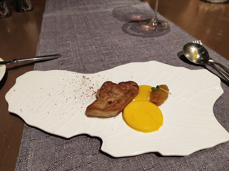 Các món lần lượt là carpaccio cá ngừ, gan vịt áp chảo, súp bí đỏ, đuôi tôm hùm nướng, thăn bò black angus và tráng miệng chocolate trắng. Nhìn chung là xuất sắc với khẩu vị của em. Tuy nhiên là vì không hảo ngọt nên không thích món tráng miệng và khoai nghiền em thích ăn kiểu mịn nên hơi buồn chút thôi ạ.