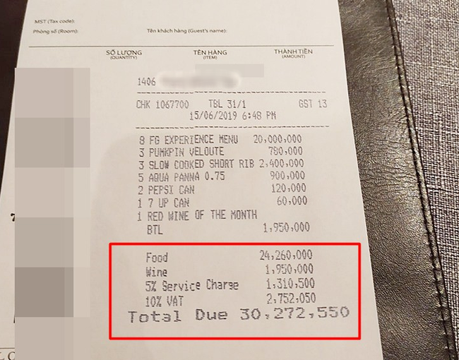 16/06/2019 14:42Tranh cãi ầm ĩ vì hóa đơn ăn tối của một gia đình hết 30 triệu đồng là 'khoe của, hoang phí'