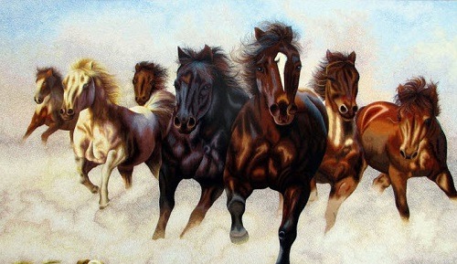 - Hình ảnh ngựa phi nước đại được coi là mang nhiều dương khí cho gia chủ. Tuy nhiên nên tránh tranh vẽ nhiều con ngựa chạy phi nước đại về phía ngược nhau. Điều đó ám chỉ xung đột giữa các thành viên trong gia đình.