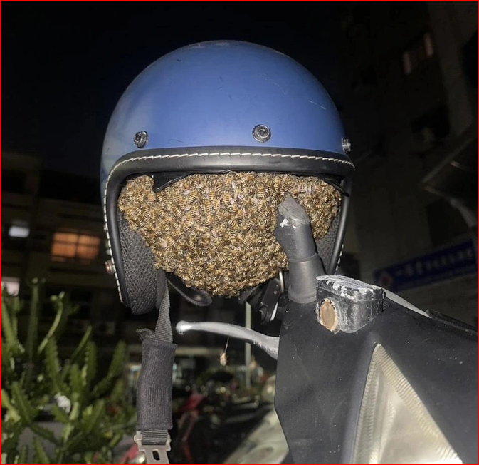 Câu chuyện hy hữu được chia sẻ trên mạng xã hội Đài Loan những ngày gần đây, thu hút sự chú ý khi một chiếc mũ bảo hiểm treo trên xe máy bị đàn ong chiếm làm nơi trú chỉ sau chưa đầy một ngày.