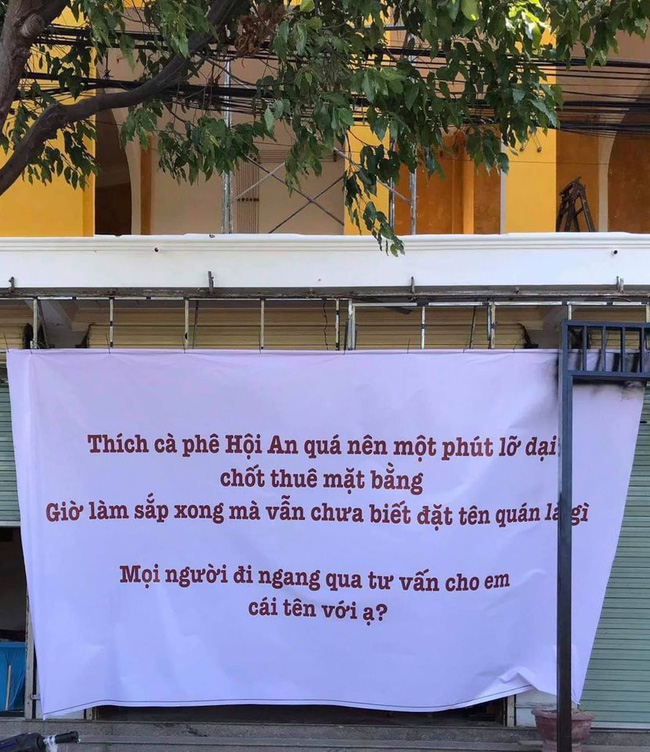 04/09/2020 20:53Trót dại thuê mặt bằng ở Hội An để mở quán cà phê mà chả biết đặt tên, chủ quán treo tấm bảng với lời nhờ vả người đi đường
