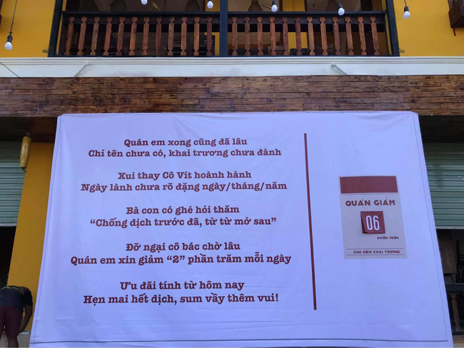 Phải nói để gọi người chủ cửa hàng này có một phong cách vô cùng lạc quan, khi quán cà phê chắc hẳn cũng phải mất chi phí vận hành khá cao nhưng vẫn đang "im lìm" chờ hết dịch và du lịch hồi phục thì một lần nữa tấm biển mới lại được treo lên.