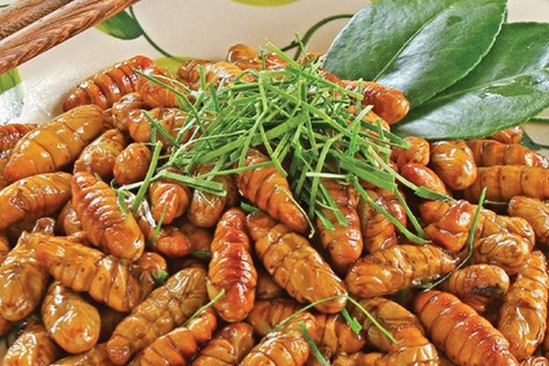 - Trong tiếng Anh gọi là ‘silkworm’, món trong ảnh là nhộng kho lá chanh.
