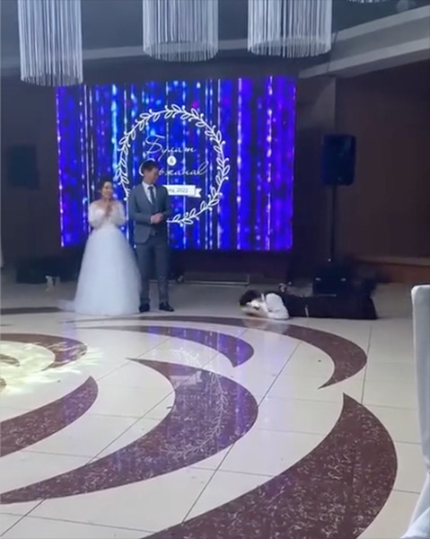 Không khí lúc này vô cùng lúng túng, cả cô dâu chú rể đều ngỡ ngàng, 'đứng hình' không biết phản ứng ra sao. May mắn là nam nhân viên đã tự đứng dậy, bê bánh kem lúc này đã tan nát vào trong.