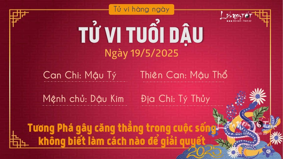 Tử vi hàng ngày 19/5/2025 của 12 con giáp, Tương Hại chỉ ra cho tuổi Mùi nhận ra vấn đề từ một sự việc tưởng là cơ hội lớn. Hãy cảnh giác vì thực ra sự chủ quan đang dẫn bạn đến sai lầm ở hiện tại và nó sẽ tiếp tục kéo dài trong tương lai nếu bạn không chịu thay đổi tình hình.