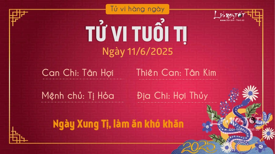11/06/2025 13:00Tử vi 12 con giáp hôm nay - thứ 4 ngày 11/06/2025: Tị khó làm ăn, Ngọ lắm kẻ ghen ghét