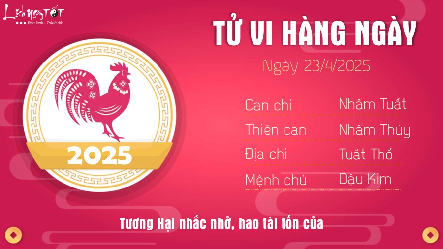 23/04/2025 13:00Tử vi 12 con giáp hôm nay - thứ 4 ngày 23/04/2025: Tý hao tài, Tỵ rủng rỉnh