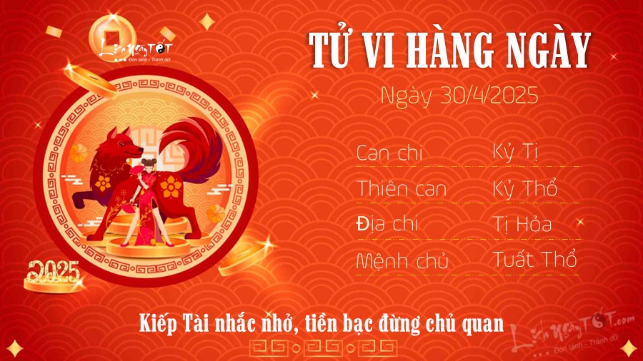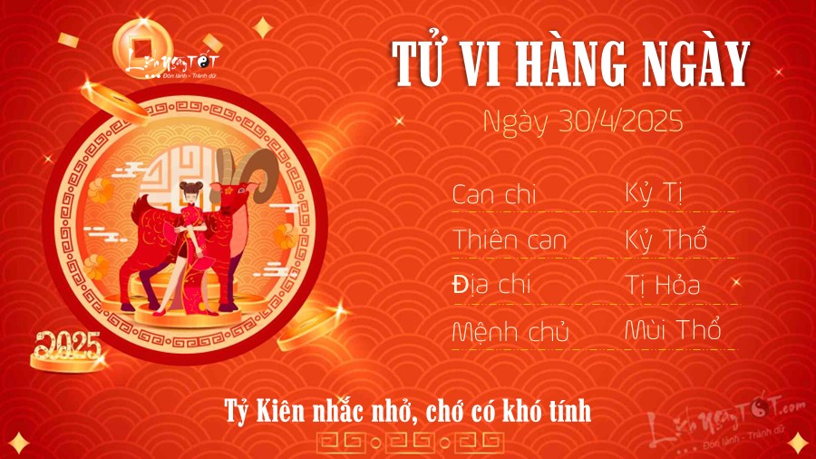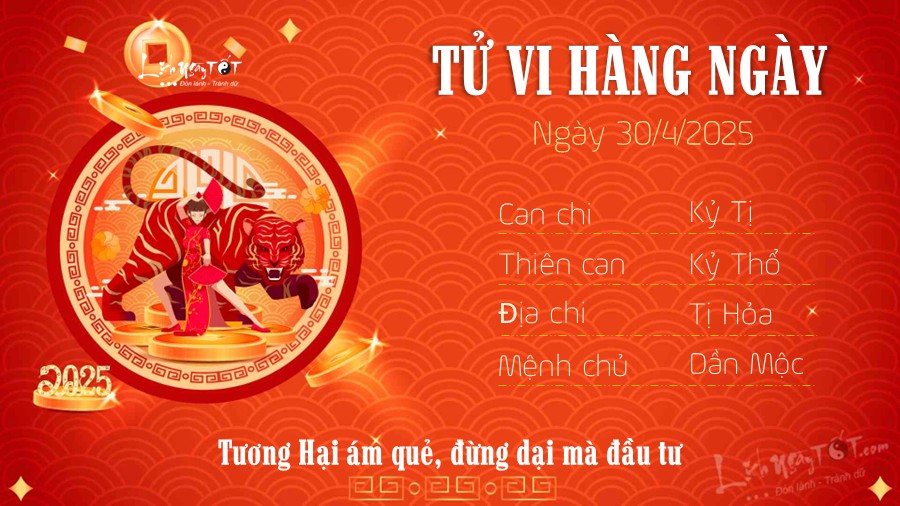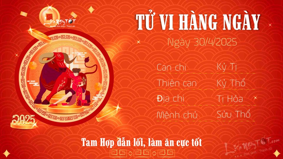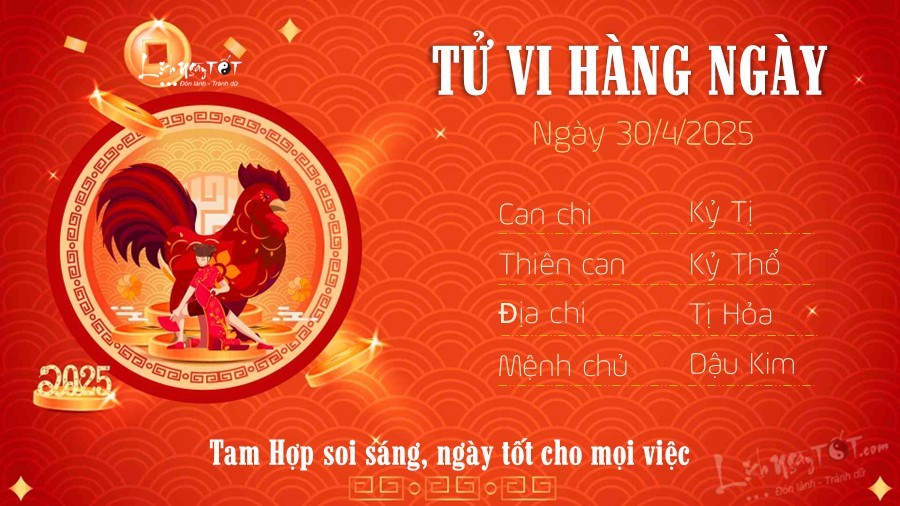30/04/2025 13:00Tử vi 12 con giáp hôm nay - thứ 4 ngày 30/04/2025: Tý nhiều tiền, Dậu vạn sự hanh thông
