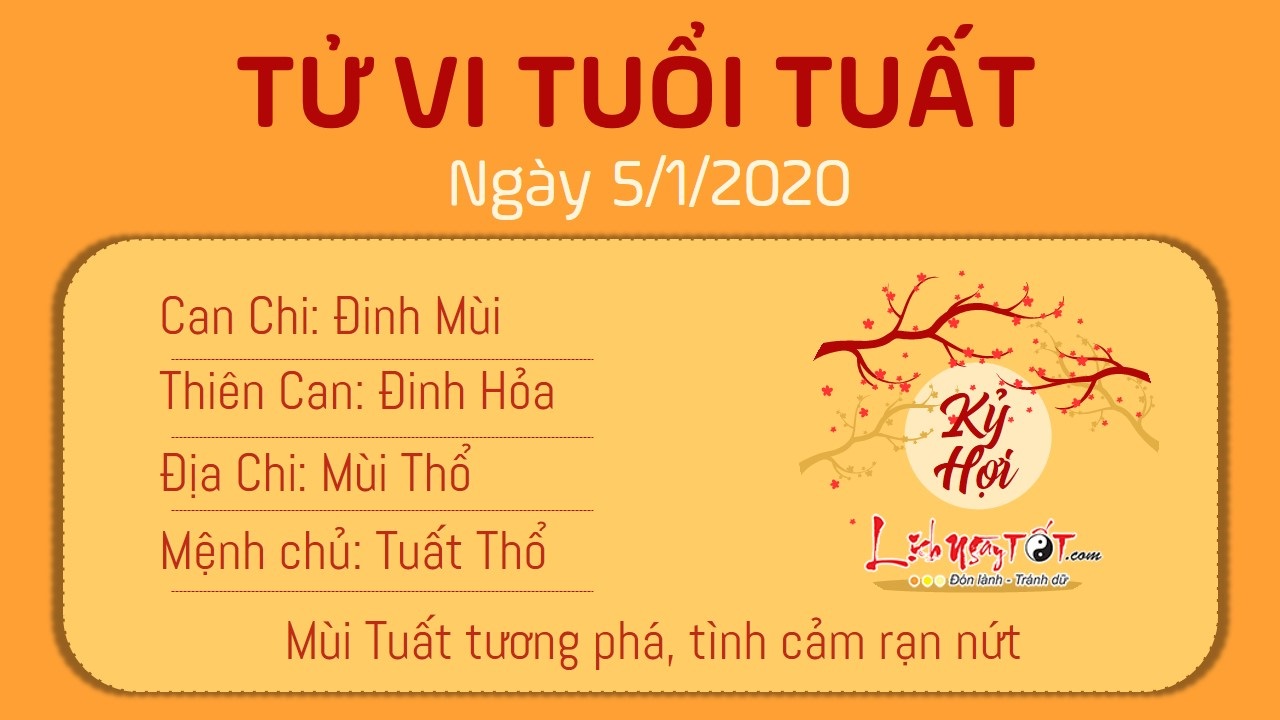 Dường như hôm nay là ngày mà tuổi Tuất sẽ phải gánh chịu nhiều nỗi buồn về tình cảm. Con giáp này cố giấu mọi chuyện trong lòng nhưng sự tổn thương quá lớn khiến bạn không nói ra thì mọi người cũng có thể biết được. Tuất Mùi tương phá, người ấy khiến bạn vô cùng thất vọng vì cuối cùng lại làm trái lại với lời hẹn ước. Tình cảm cứ ngỡ sẽ bền lâu nhưng lại tan biến trong chớp mắt, để lại con giáp này cùng sự tiếc nuối. Người độc thân mê mải với công việc, với thú vui riêng của mình. Khi ngẩng đầu lên thì bạn bè xung quanh đều đã có đôi có cặp, trong khi bản thân vẫn còn cô đơn, không biết phải làm thế nào để có được tình yêu cho riêng mình.