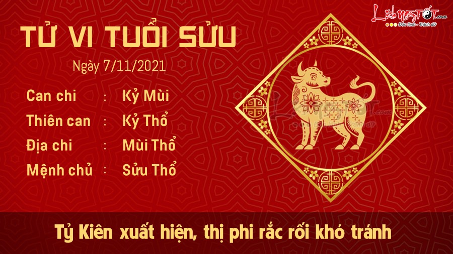 Tương Xung tác động, người tuổi Sửu khó tránh khỏi những bất đồng mâu thuẫn với mọi người xung quanh. Có vẻ như bạn chẳng thể nào tìm được tiếng nói chung trong cách giải quyết công việc. Bầu không khí giữa đôi bên trở nên căng thẳng hơn thường ngày. Lại thêm Tỷ Kiên xuất hiện, con giáp này cũng khó thoát khỏi những chuyện thị phi rắc rối. Có lẽ đây không phải là thời điểm thích hợp để bạn lo chuyện bao đồng đâu, hãy tập trung vào công việc của bản thân và nhanh chóng xử lý trước khi mọi việc trở nên phức tạp hơn. Ngày 7/11/2021 dương lịch là ngày Can Kỷ, không trị bệnh ở tỳ. Bản mệnh nên lưu ý chớ làm tổn thương đến vị trí này trong ngày hôm nay.