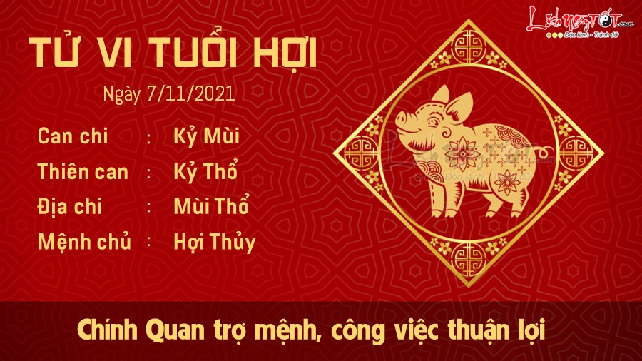 Tam Hợp che chở, người tuổi Hợi có thể thoải mái nghỉ ngơi mà không cần phải lo lắng quá nhiều về công việc nữa. Mọi việc đang tiến triển vô cùng thuận lợi, bạn cứ ở nhà và chờ tin tốt đi nhé. Chưa kể có Chính Quan trợ mệnh cũng giúp con giáp này ngày một tự tin hơn vào năng lực của chính mình. Bạn chẳng hề ngần ngại khi được giao thêm những trọng trách mới, lúc nào bạn cũng sẵn sàng tinh thần làm việc và cống hiến hết mình mà. Thủy Thổ bất dung, những hiểu lầm giữa bạn và người ấy chẳng những không được hóa giải mà còn ngày một rắc rối hơn. Lúc này cả hai nên thẳng thắn nói ra nhưng khúc mắc trong lòng, đừng tự chôn vùi mối quan hệ mà hai người chỉ vì những mâu thuẫn không đáng có như vậy.