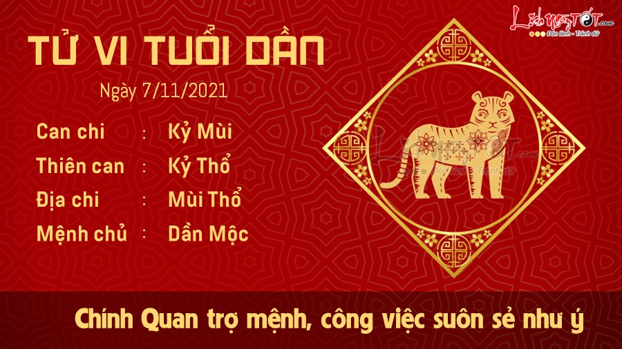 Chính Quan trợ mệnh, người tuổi Dần trở nên tự tin vào những quyết định của mình trong ngày hôm nay. Chưa khi nào mọi việc lại suôn sẻ thuận lợi đến vậy, hãy mau chóng chớp lấy thời cơ thể hiện bản thân này. Dù là ngày nghỉ nhưng con giáp này chẳng hề ngại việc, tinh thần trách nhiệm của bạn sẽ được cấp trên đánh giá cao. Đây chính là cơ hội để bạn được cất nhắc lên những vị trí xứng đáng hơn với năng lực của bạn. Tiếc là chuyện tình cảm của bạn là chẳng mấy tiến triển trong ngày Mộc khắc Thổ này. Có vẻ như bạn đã quá mải mê với công việc mà bỏ bê, thiếu quan tâm đến người ấy. Dù thế nào cũng hãy dành thời gian để yêu thương và hâm nóng tình cảm giữa hai người đi nhé.