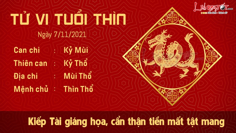 Kiếp Tài sẽ mang đến cho người tuổi Thìn không ít khó khăn về vấn đề tiền bạc. Hãy nhớ, đây chưa phải là thời điểm thích hợp để bạn tính chuyện đầu tư hay mở rộng kinh doanh đâu. Hãy tập trung vào những gì mình sẵn có đã bạn nhé. Một ý chí mạnh mẽ và một tinh thần tỉnh táo là rất cần thiết với bạn lúc này, đừng nóng vội mà tin lầm người. Trong ngày này, vị trí của Thai thần ở hướng chính Đông phía ngoài cửa phòng thai phụ và nhà vệ sinh. Do đó, bản mệnh không nên dịch chuyển vị trí đồ đạc, tiến hành các công việc sửa chữa tại đây. Bởi việc làm đó có thể làm động Thai thần, ảnh hưởng đến cả người mẹ và thai nhi.