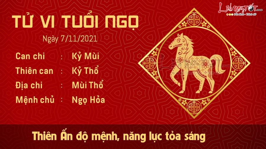 Người tuổi Ngọ chẳng hề gặp một chút khó khăn nào khi có Tương Hội ở bên trong ngày này. Các mối quan hệ xã giao của bạn cũng vô cùng tốt đẹp, khiến mọi việc diễn ra suôn sẻ không ngờ. Thiên Ấn khẳng định năng lực mạnh mẽ của bạn, nhất là với những người làm trong lĩnh vực dịch vụ, nghệ thuật, hay nghề tự do. Sự linh hoạt và nhạy bén giúp bạn nhanh chóng ghi điểm trong mắt mọi người xung quanh. Sẽ có không ít lời khen ngợi dành cho bạn trong ngày hôm nay. Đào hoa vượng sắc, con giáp tuổi Ngọ sớm đắm chìm trong tình yêu trong ngày Hỏa Thổ tương sinh này. Sự hòa hợp giữa hai bạn khiến cho mọi người xung quanh không ngừng ghen tị. Người độc thân cũng tỏa ra một sức hút mạnh mẽ khiến không ít đối tượng tìm tới và bày tỏ tình cảm. Hãy lắng nghe trái tim mình và cho đối phương câu trả lời đi nhé.