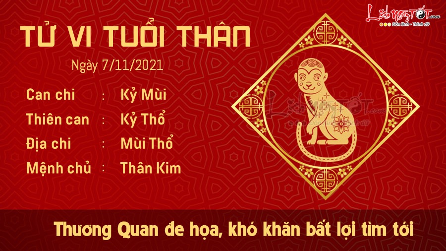 Chủ nhật này, người tuổi Thân sẽ phải đối mặt với không ít biến động trong công việc bởi những tác động không mấy tích cực từ hung thần Thương Quan. Mọi dự định kế hoạch của bạn đang thuận lợi bỗng chốc gặp trúc trắc không ngờ. Thời điểm này, tốt nhất là bản mệnh nên bình tĩnh, đừng nóng vội đưa ra bất cứ quyết định nào. May mắn là ở bên cạnh con giáp này luôn có một hậu phương vững chắc, người ấy luôn mang lại cho bạn cảm giác ấm áp và cả những lời khuyên hữu ích nữa. Dù có mệt mỏi thế nào thì chỉ cần hai người được ở bên nhau, cùng nhau trò chuyện là mọi việc cứ thế sẽ đâu vào đó ngay thôi.