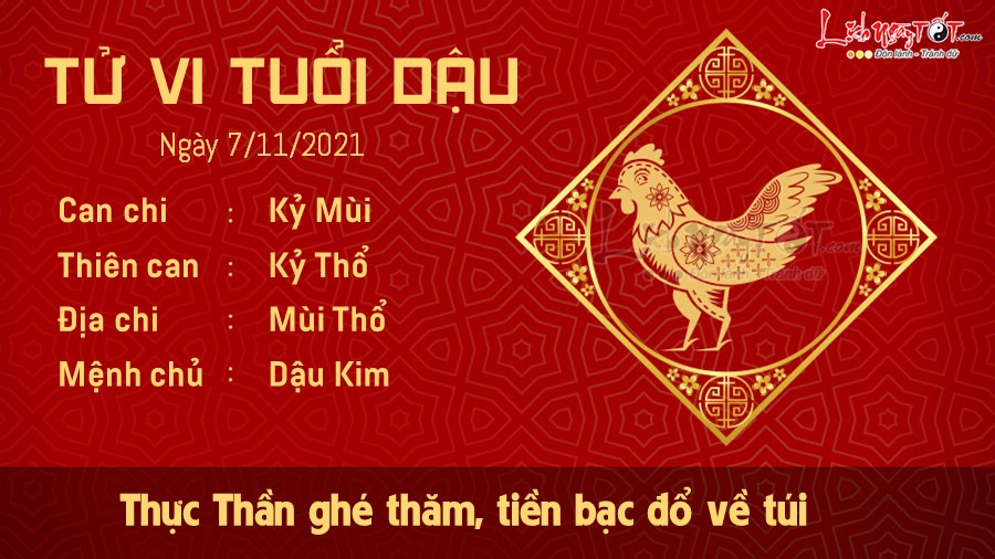 Một bất ngờ nho nhỏ sẽ khiến người tuổi Dậu cảm thấy mừng vui khôn xiết trong ngày có Thực Thần ghé thăm này. Nhất là khi tin vui này lại liên quan đến tiền bạc, có vẻ như túi tiền của con giáp đã đầy lên trông thấy rồi. Nguyên nhân là bởi những khoản đầu tư tưởng chừng đã ngủ đông từ lâu, nay đã có khởi sắc mạnh mẽ và giúp con giáp này thu về một khoản lợi không hề nhỏ. Những người làm kinh doanh buôn bán cũng sẽ có một ngày buôn may bán đắt, khách hàng gia tăng không ngừng. Thổ Kim tương sinh, các cặp đôi sẽ có một ngày cuối tuần ngọt ngào và ấm áp đáng ghen tị. Khoảng thời gian hai người được ở cạnh nhau càng làm tăng thêm sợi dây tình cảm gắn kết hai người. Hãy cùng nhau tận hưởng những giờ phút đáng quý này nhé.